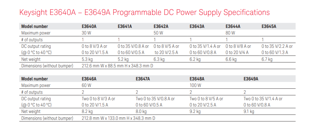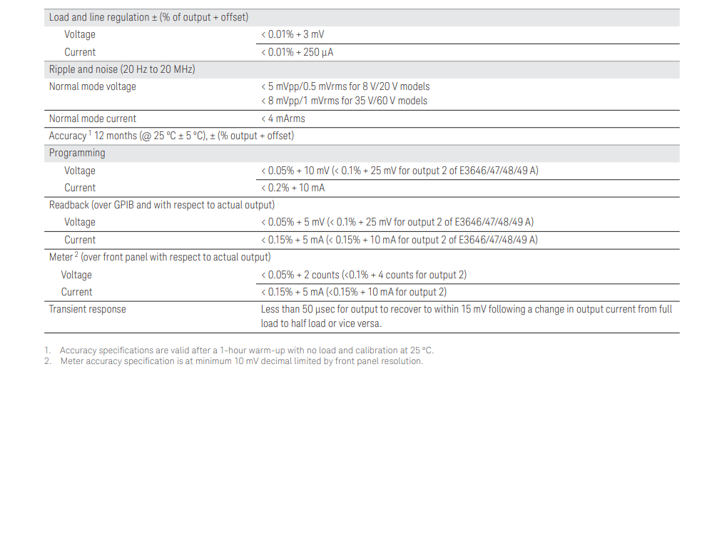 전압: <0.05% + 5 mV (E3646/47/48/49A의 출력 2는 <0.1% + 25mV)