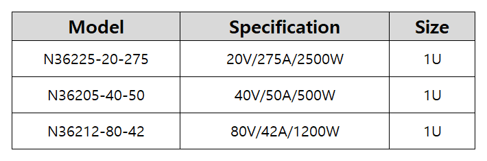 N36200 시리즈 DC 전원 공급 장치는 체계적인 방열 설계를 채택하고, 1U 사이즈 소형장비로, 최대 1600W의 광범위한 출력을 제공하며, 전압은 최대 80V, 전류는 최대 42A입니다. N36200 시리즈는 고객의 테스트 애플리케이션 시나리오를 충족시키기 위해 소형 크기와 높은 전력 밀도로 설계되었으며, 구매 비용과 차지하는 공간을 절약합니다.