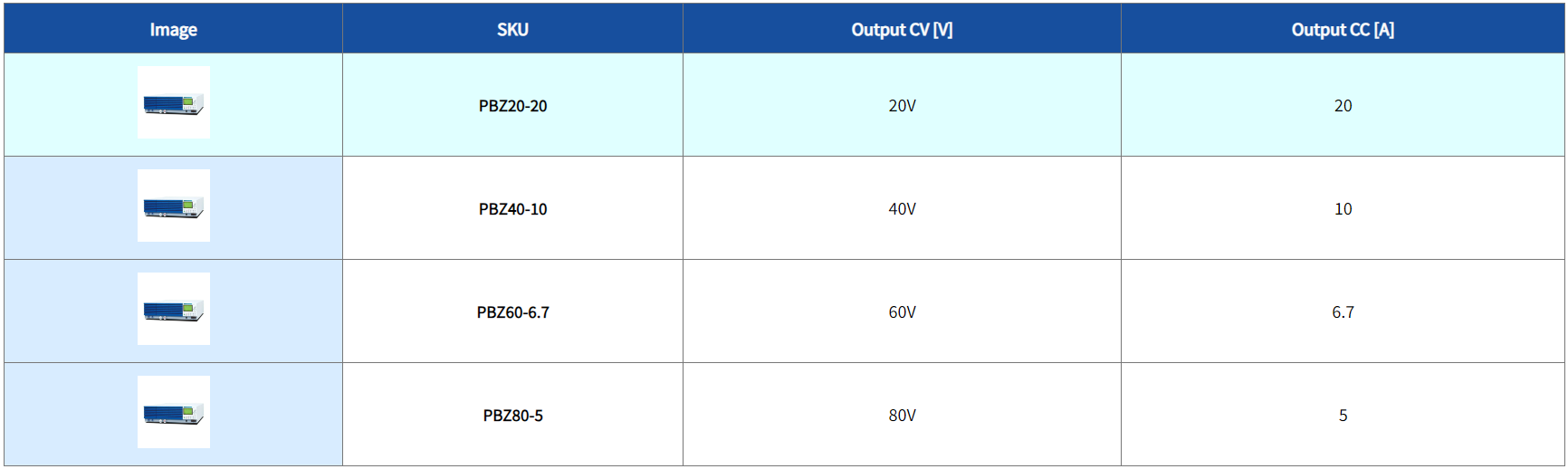 2개의 PBZ 유닛을 병렬로 연결하기 위한 옵션 액세서리 키트(동일 모델). 테스트 요구 사항에 가장 적합한 다음 키트를 선택하세요.