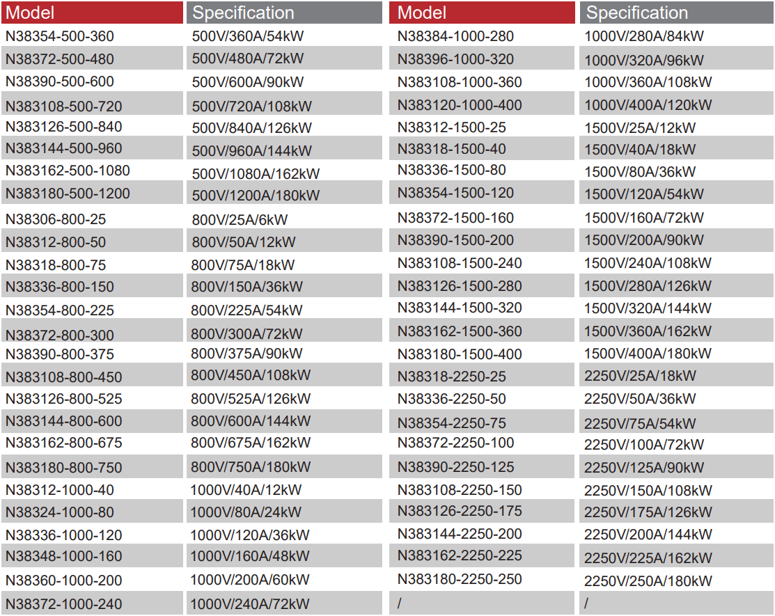 ●전압 최대 2250V, 전류 최대 5100A, 전력 최대 180kW