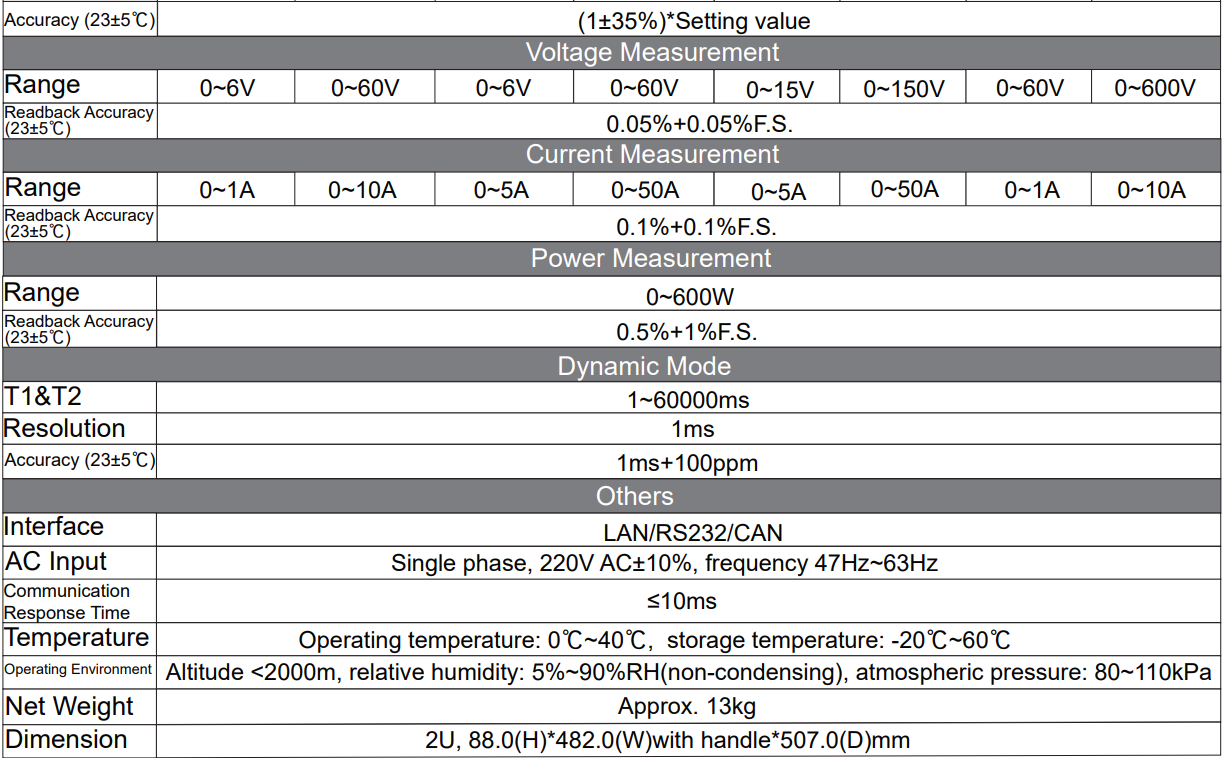 • 전압 최대 600V, 전류 최대 150A, 전력 최대 1800W