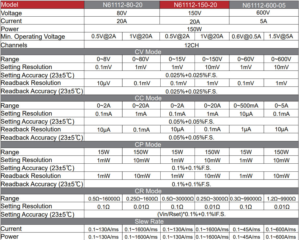 ●8가지 테스트 모드: CC, CV, CR, CP, CV+CC, CV+CR, CR+CC, CP+CC