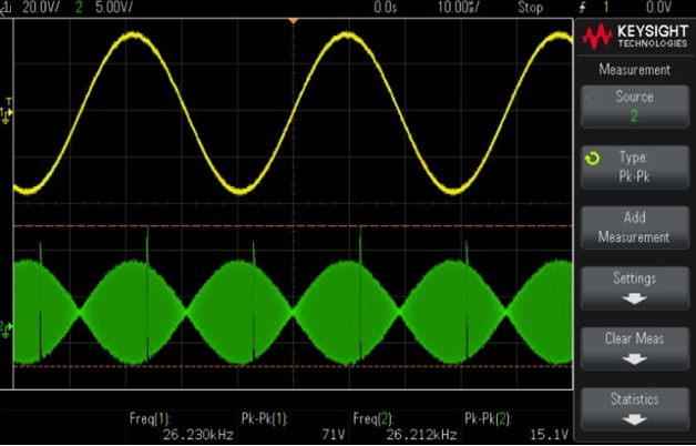 오실로스코프 캡처를 설정하지 않고도 AC RMS, DC, DC RMS를 빠르게 측정할 수 있습니다. 볼트미터 결과는 항상 표시되어, 이러한 빠른 특성화 측정을 쉽게 확인할 수 있습니다.