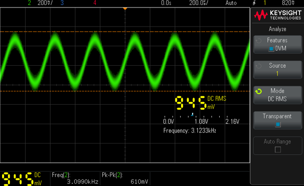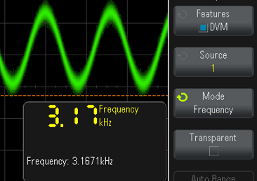 볼트미터는 오실로스코프 채널에 연결된 프로브를 통해 작동하지만, 그 측정은 오실로스코프의 트리거링 시스템과 분리되어 있어 동일한 연결로 DVM과 트리거된 오실로스코프 측정을 모두 수행할 수 있습니다.