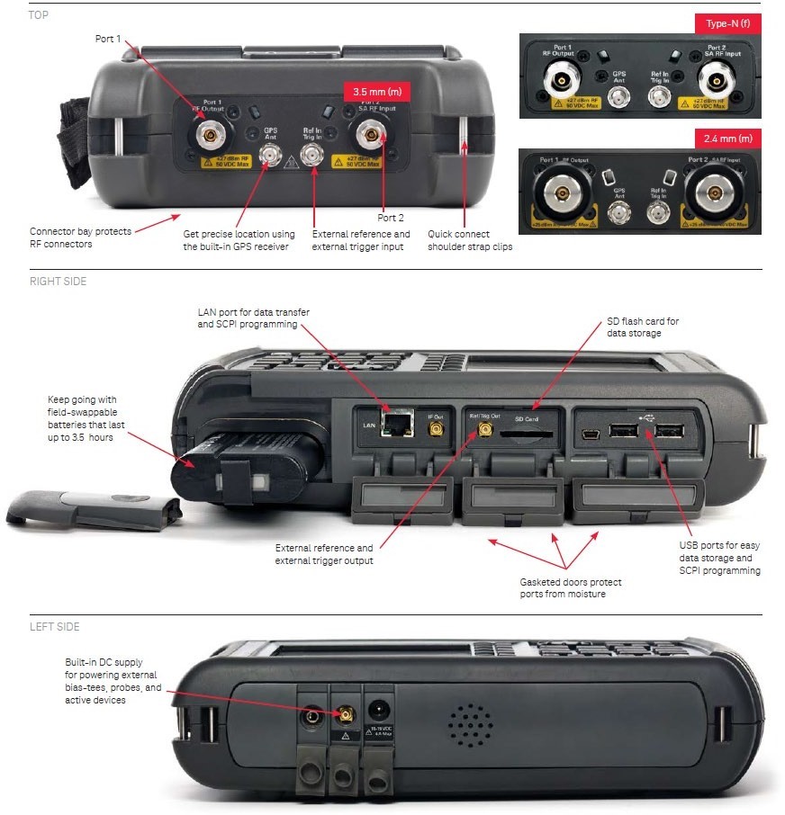 주요 옵션 | 스펙트럼 분석기 • 벡터 네트워크 분석기 • 내장 파워 미터 • 펄스 측정 • 채널 스캐너 • GPS 수신기 • 실시간 스펙트럼 분석기 • 89600 VSA 소프트웨어 연동 • Surveyor 4D 소프트웨어 연동 • I/Q 분석기 • IQ 스트리밍 • 잡음지수(Noise Figure) 측정 • OTA(Over-the-Air) LTE FDD/TDD 및 5GTF 측정 • 실내/실외 맵핑 • 전자기장(EMF) 측정 | 케이블 및 안테나 분석기 • TDR 케이블 측정 (시간 영역 반사 측정) • 풀 2-포트 S-파라미터 측정 • 시간 영역(Time Domain) 분석 • QuickCal (간편 보정 기능) • 벡터 볼트미터 • 내장 파워 미터 • 외부 USB 파워 센서 지원 • 펄스 측정 • GPS 수신기 | 풀 밴드 트래킹 제너레이터 • 풀 밴드 프리앰프 • 내장 파워 미터 • 펄스 측정 • 채널 스캐너 • GPS 수신기 • 실시간 스펙트럼 분석 기능 • 89600 VSA 소프트웨어 연동 • Surveyor 4D 소프트웨어 연동 • I/Q 분석기 • IQ 스트리밍 • 잡음지수(Noise Figure) 측정 • OTA(Over-the-Air) LTE FDD/TDD 및 5GTF 측정 • 실내/실외 맵핑 • 전자기장(EMF) 측정 |