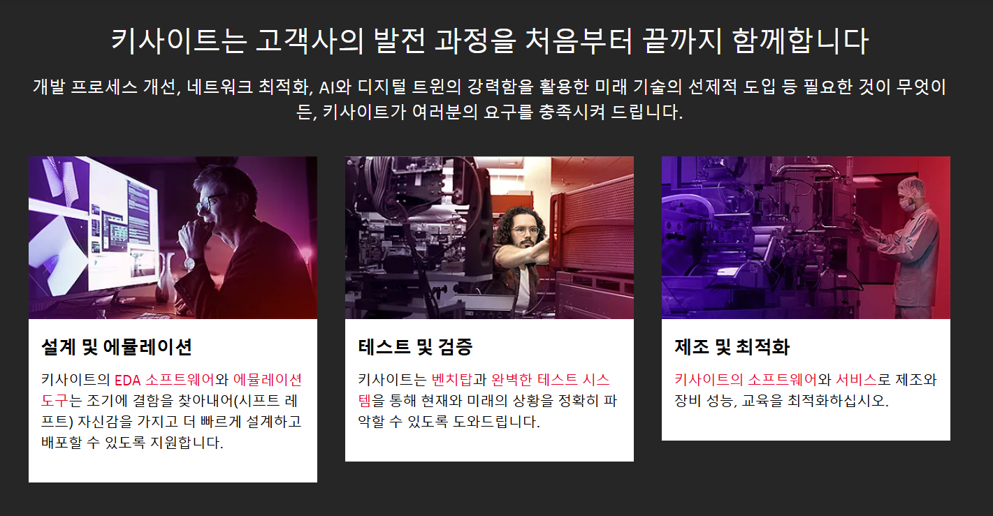 키사이트는 현재와 미래를 바꾸는 기술의 성공적인 실현을 통해 끊임없이 산업 리더십을 기르고 투자자들을 위한 가치를 높입니다.