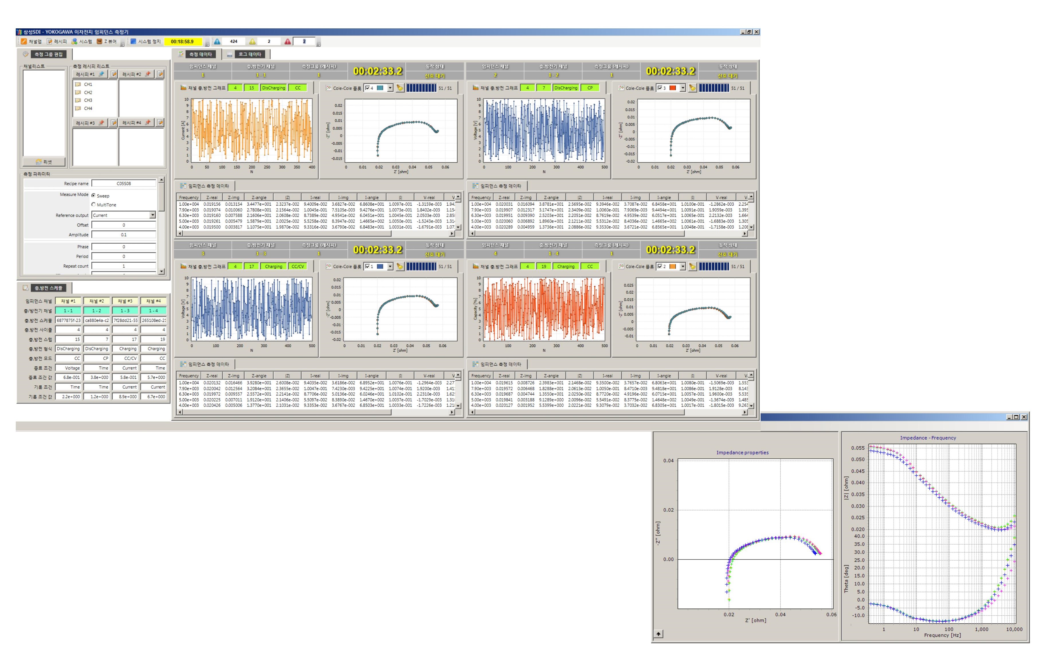 2차 전지의 멀티 Cell 충, 방전 시험의 스케쥴링 및 충, 방전 과정에서 배터리의 임피던스 특성을 분석하기 위한 시스템