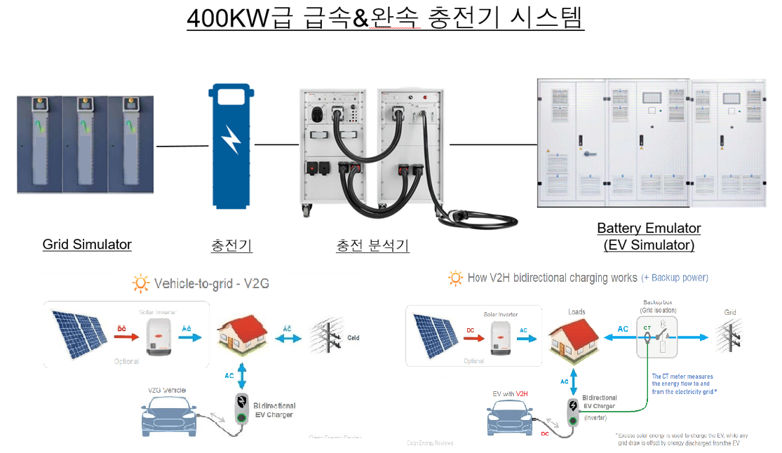 140kW& 400kW 급속 & 완속 충전기 충전분석 시스템 / 100kW V2G & V2H 시뮬레이터 [ 구축 ]