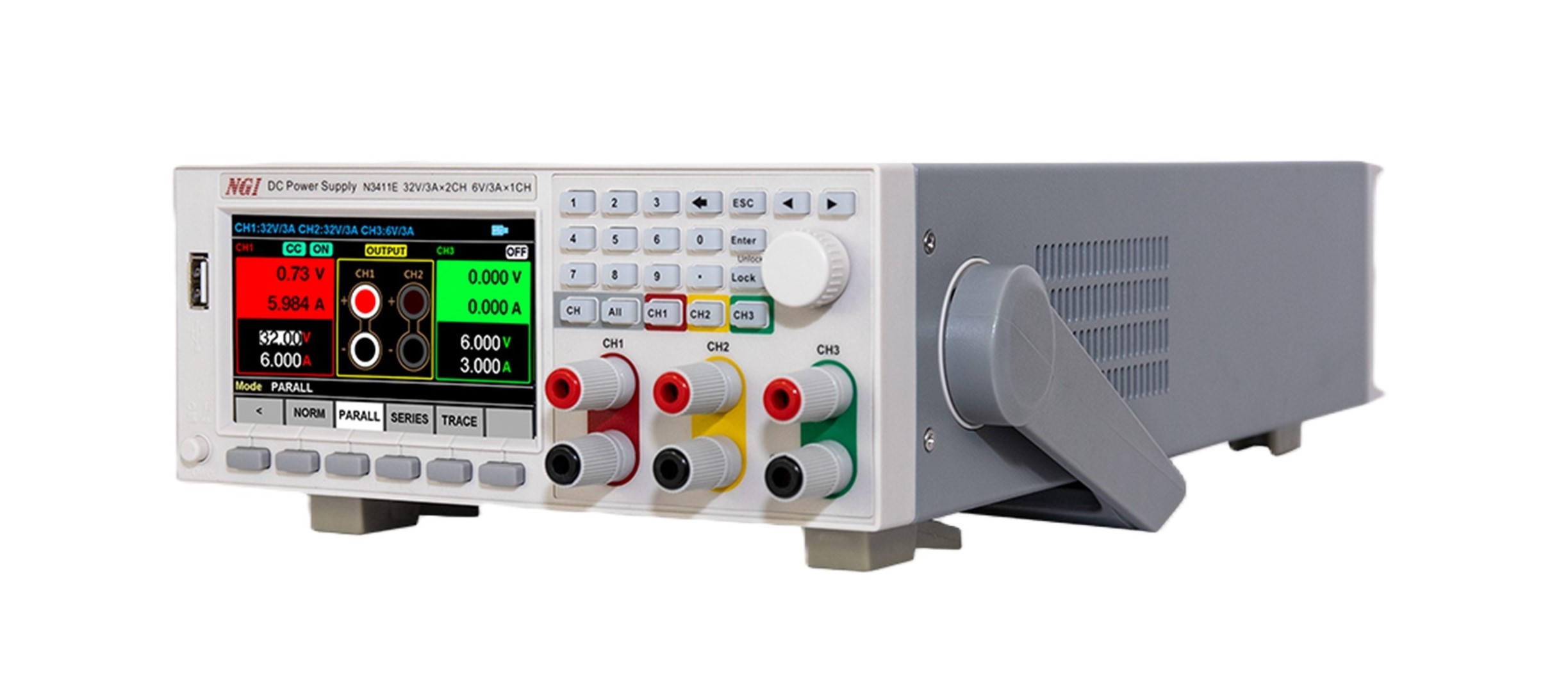N3410 시리즈에는 CH1/CH2 직렬, 병렬 및 추적의 세 가지 출력 모드가 있으며, 이는 전면 패널에서 전환할 수 있으며, 외부 직렬 및 병렬 배선이 필요 없어 다양한 범위 및 전압 출력 요구 사항을 충족할 수 있습니다.